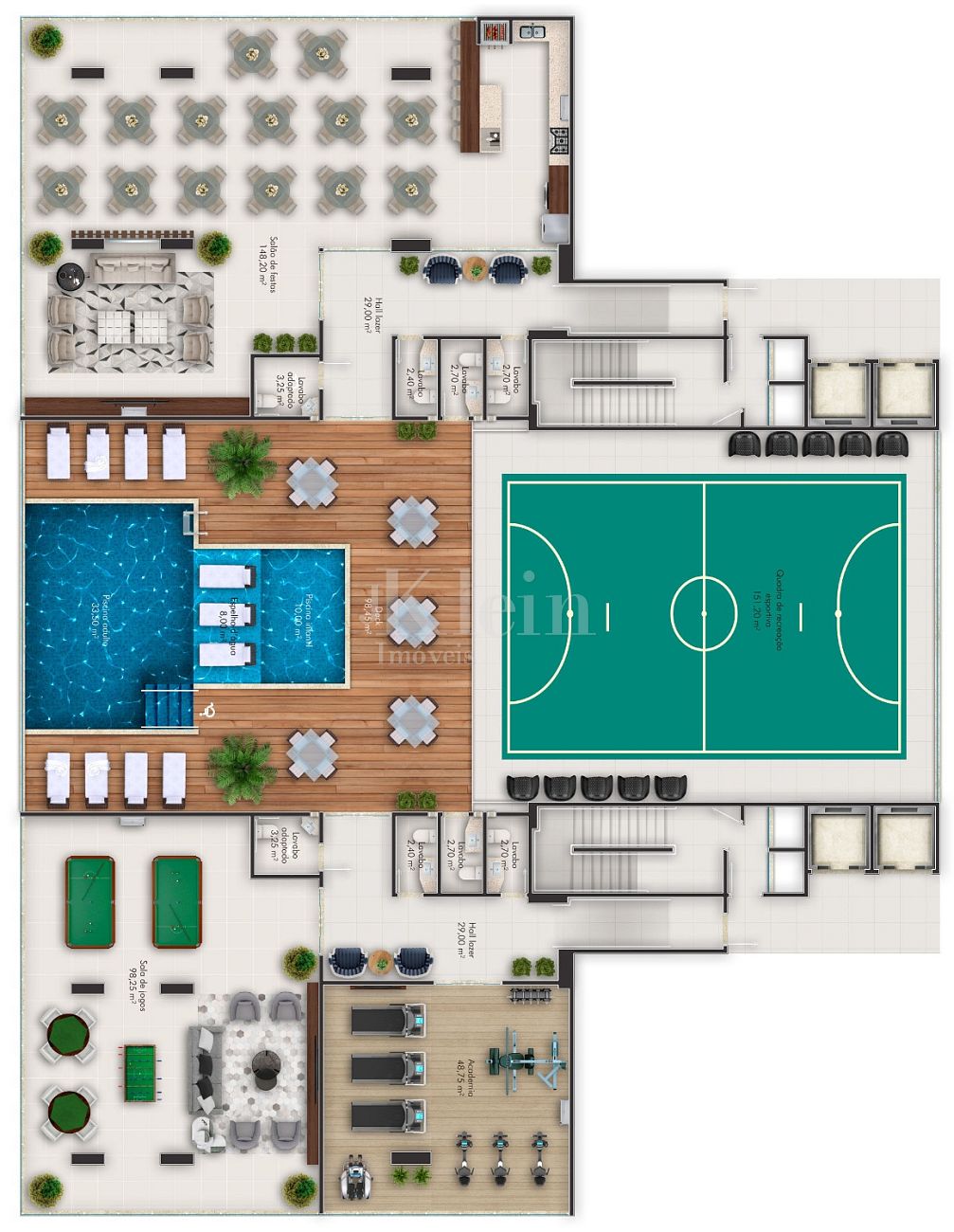 O empreendimento se destaca pela sua área de lazer completa, com piscina adulto e infantil, salão de festas, sala de jogos, academia, deck, quadra de recreação esportiva e espaços de convivência pensados para todas as idades. As áreas comuns foram planejadas para proporcionar lazer, bem-estar e integração entre os moradores.