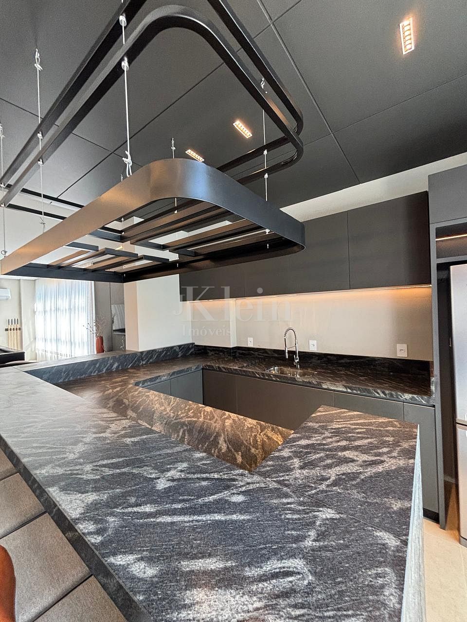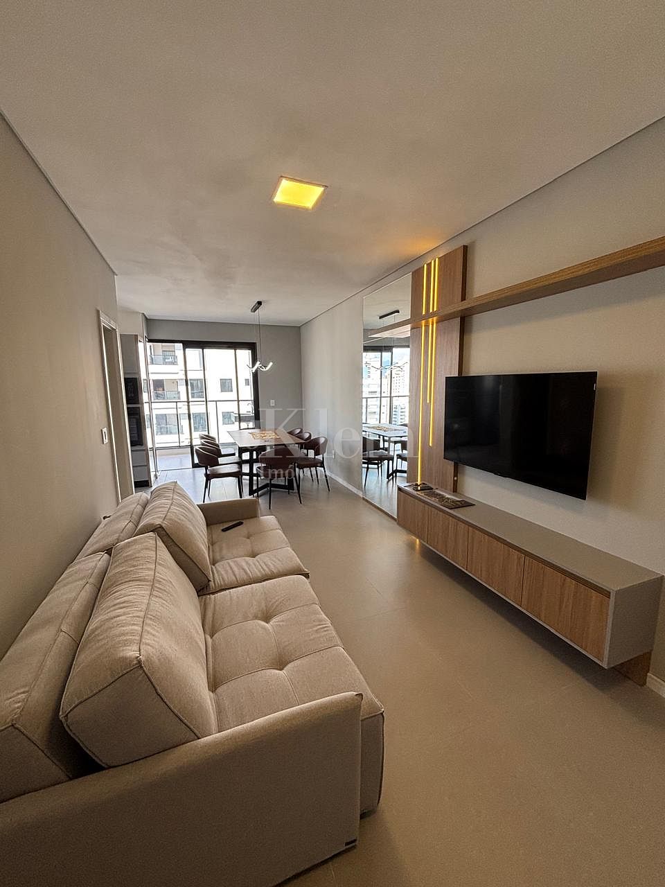 O apartamento apresenta conceito contemporâneo com integração entre: