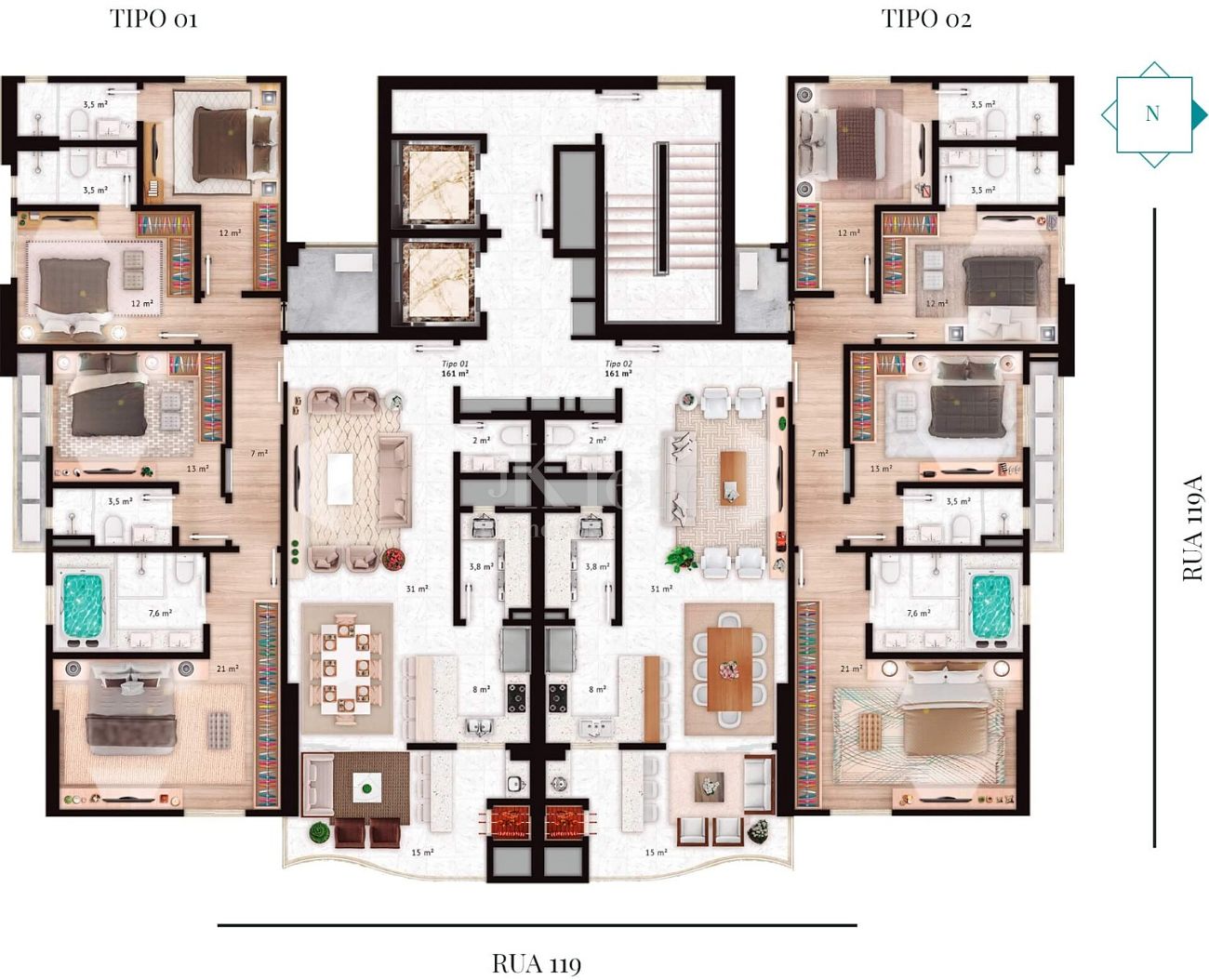 📐 161 m² de área privativa