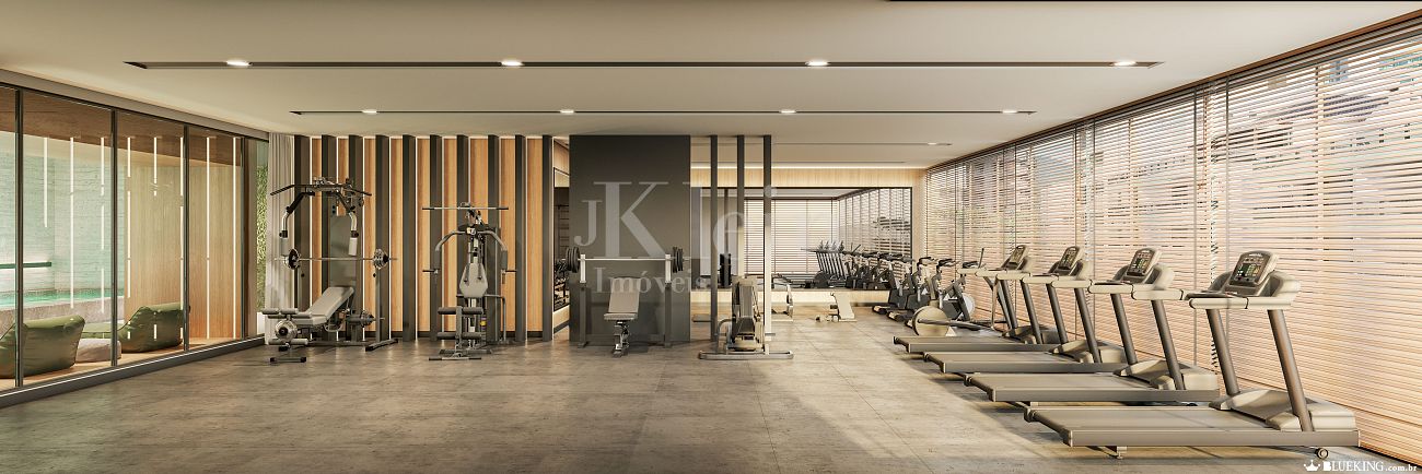 Academia equipada, climatizada e integrada ao projeto de alto padrão.