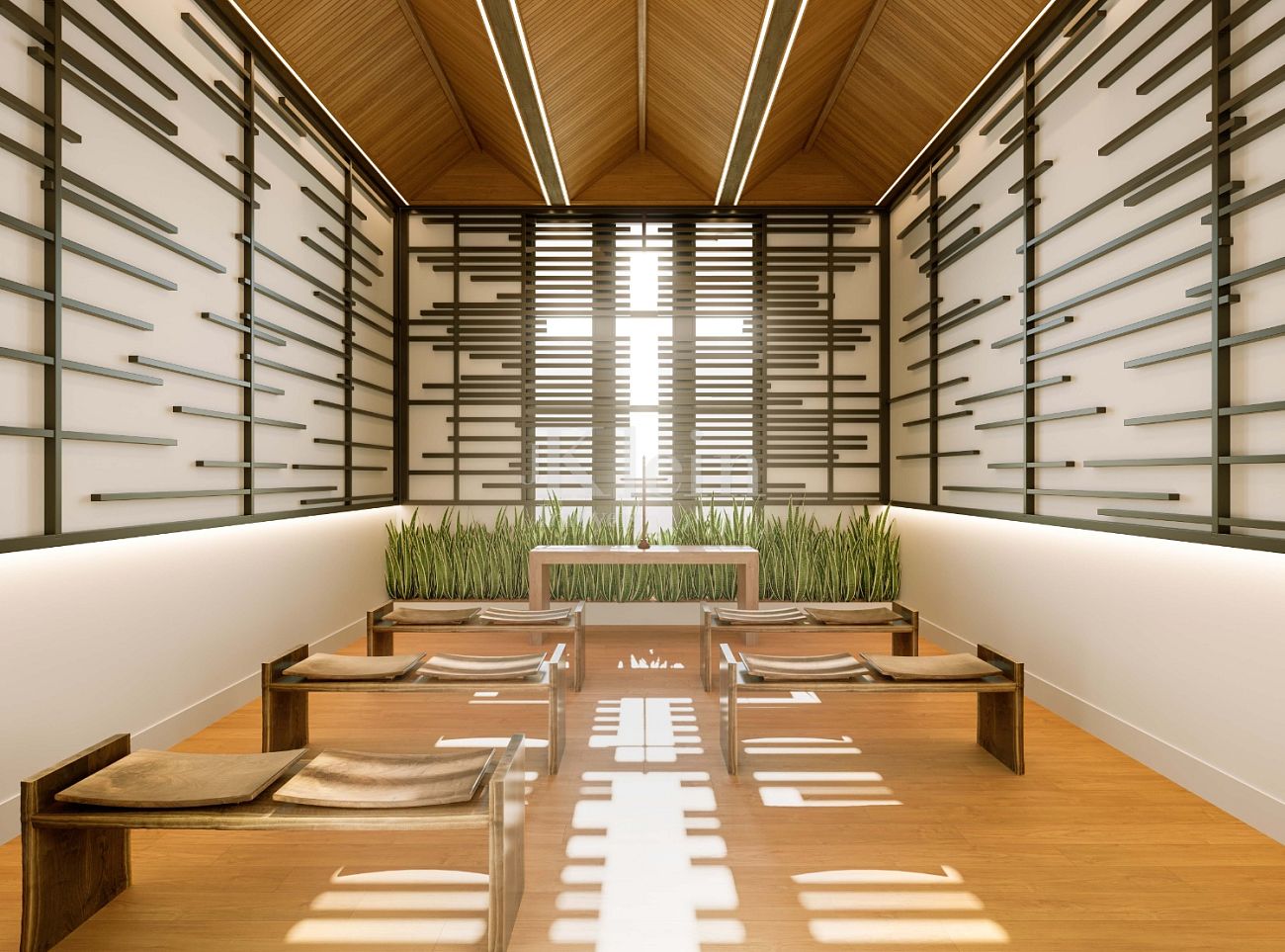 Os acabamentos seguem um padrão superior, compatível com o nível do empreendimento. Piso em porcelanato de grandes formatos, acabamento em gesso, fechadura eletrônica, infraestrutura completa para climatização split e soluções construtivas que elevam o conforto térmico e acústico fazem parte do projeto. Cada detalhe foi pensado para entregar uma experiência residencial acima da média.